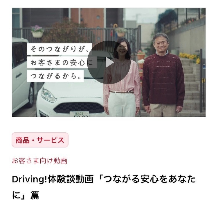 つながるドラレコ .Driving! 事故の時って本当にパニックになっちゃいますよね。ドライブレコーダーが一定の衝撃を検知した場合に自動的に損保ジャパンに通知するほかドライブレコーダーの通話機能を用いた警察・消防手配やロードアシスタンスの依頼、ALSOKによる事故現場かけつけサービスを依頼することができます。撮るだけのドラレコからつながるドラレコへ!是非ご検討ください。 画像をタップ!動画が視聴できますよ。