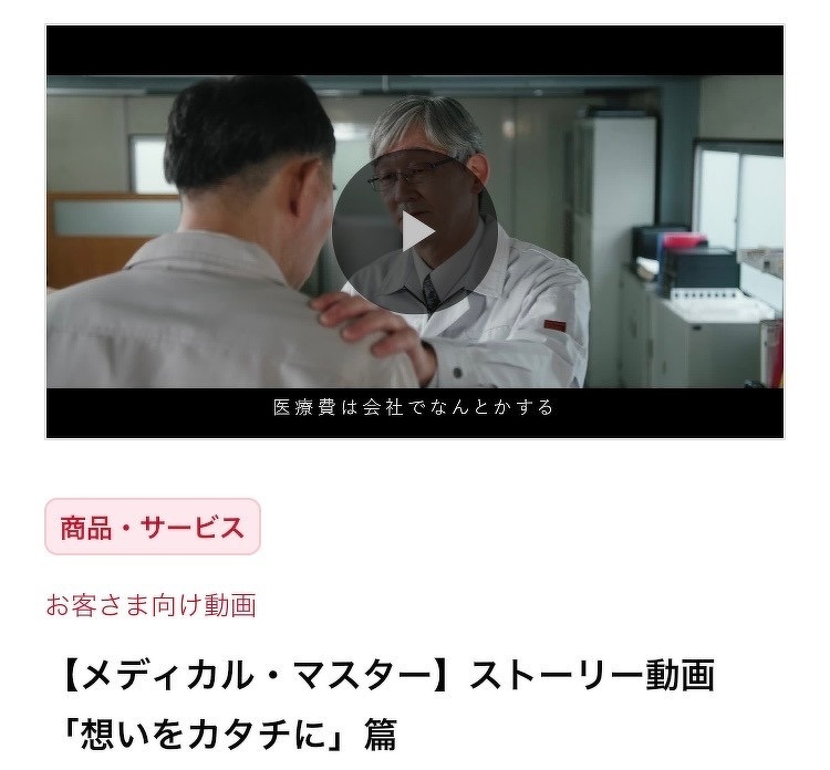 メディカル・マスター ~従業員への想いをカタチに~ 従業員が病気やけがで休職することに。 経営者のあなたならどうします? 経営者の従業員への思いをカタチにできる保険「メディカル・マスター」 画像をタップ!動画が視聴できますよ。